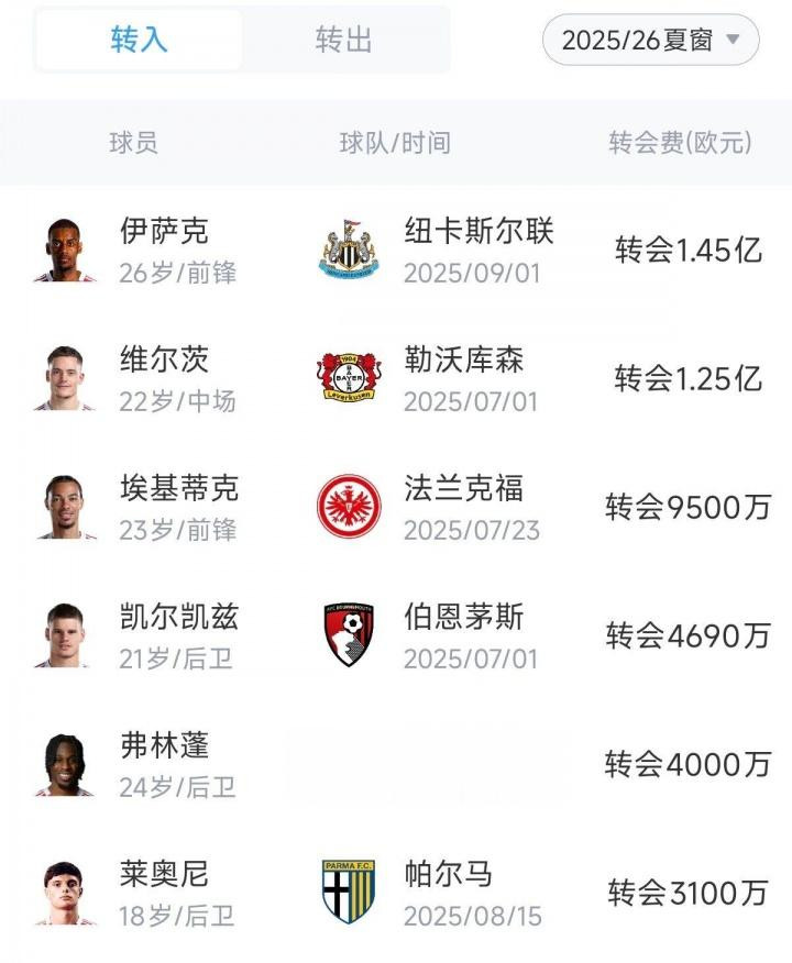 在这一波低迷中,利物浦夏窗将近5亿欧的6大新援(未计入0费用球员),他们的状况如何呢?